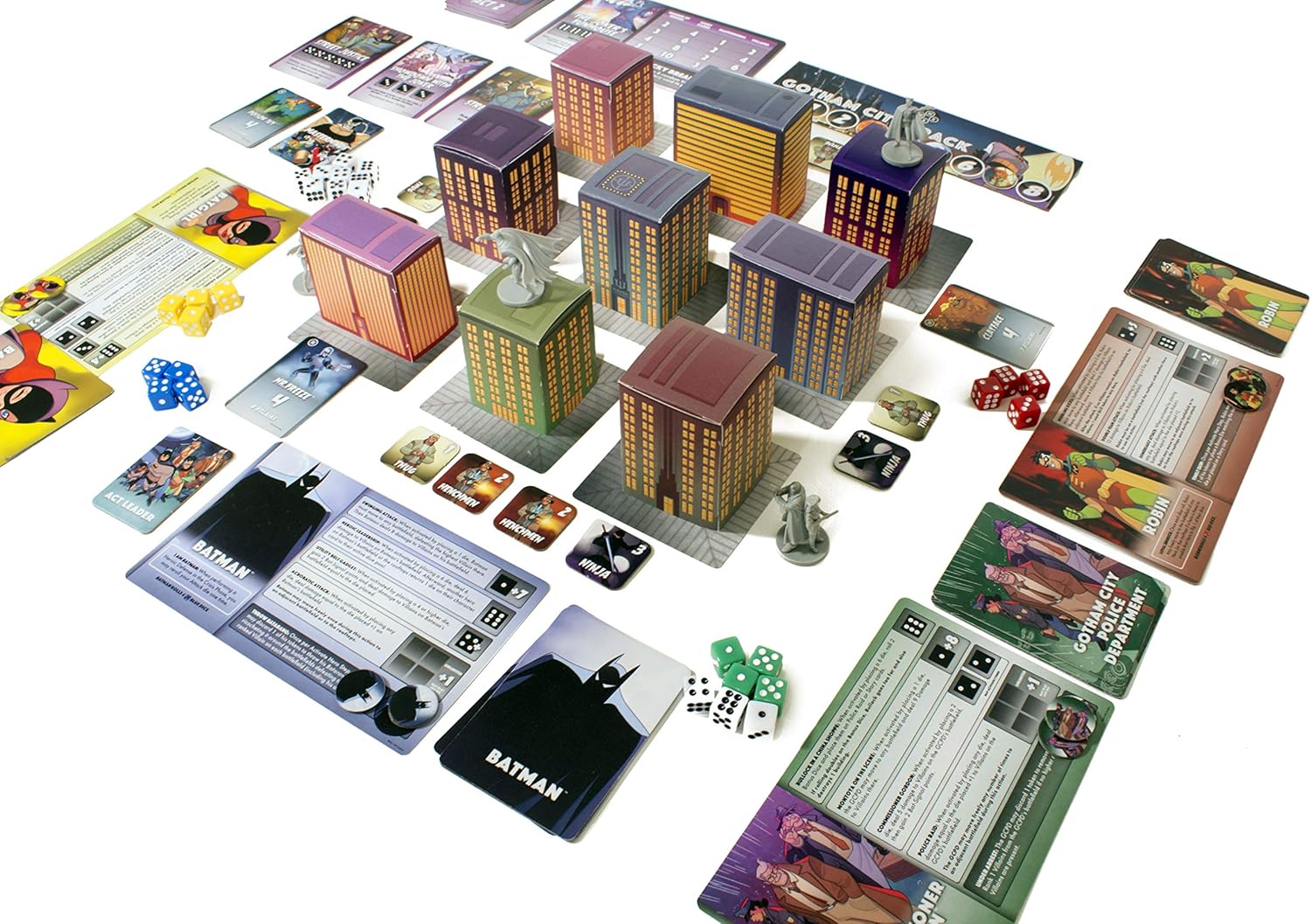 The game comes with fold-up paper buildings, which I guess function as the board. They look nice, anyway.