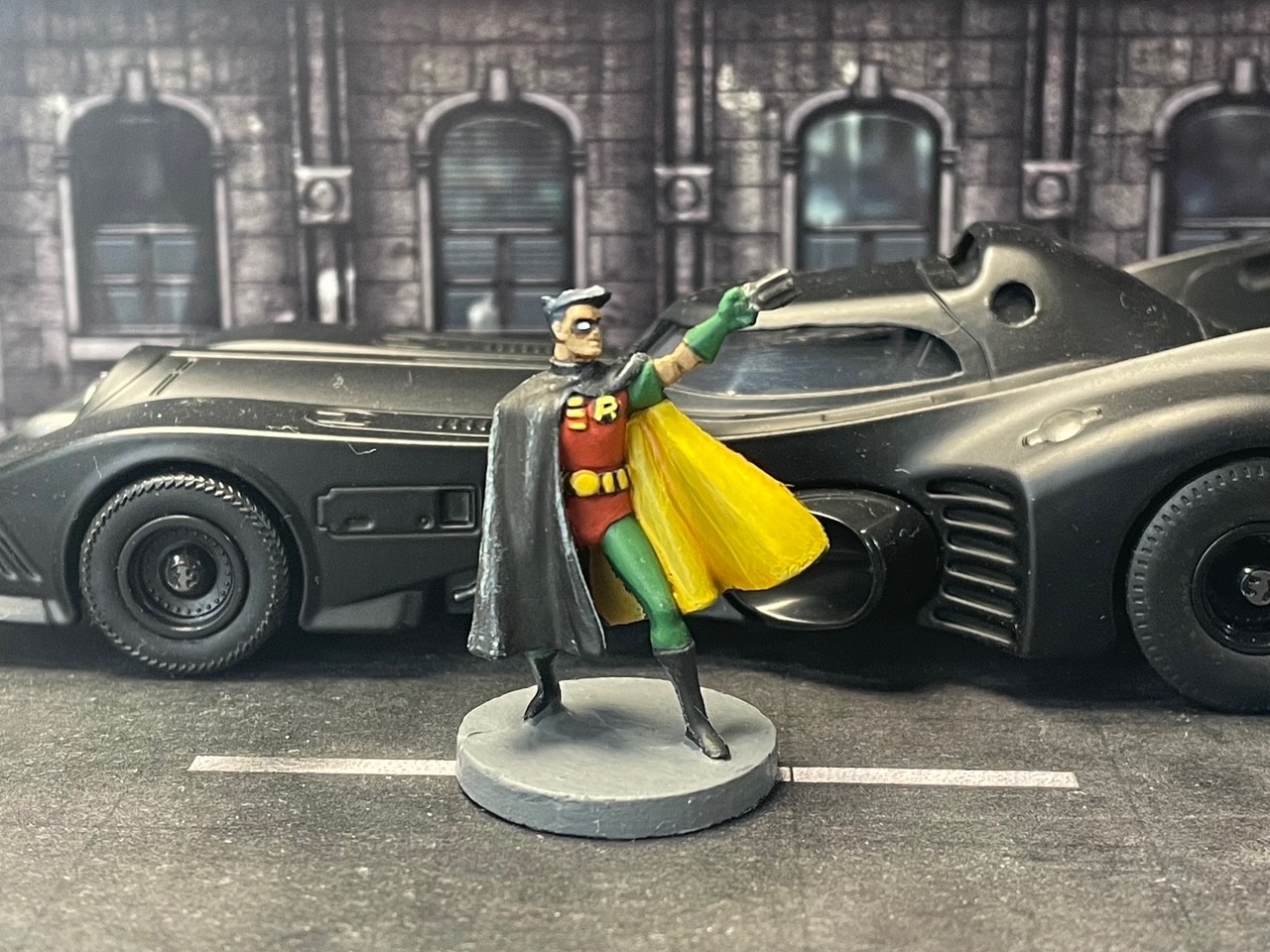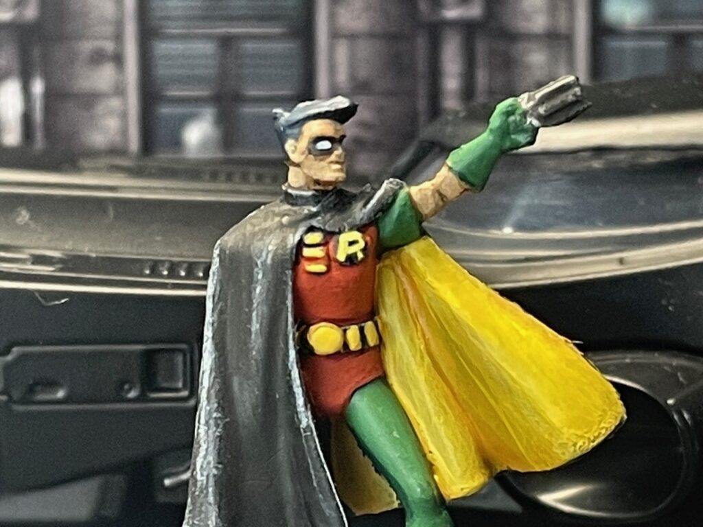 Robin, the Boy Wonder. The Batmobile is not included with this game. Neither is the cop car above.
