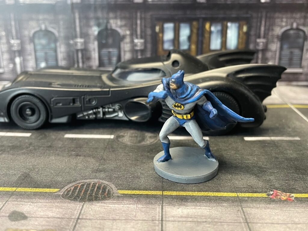 A while back, I said I wanted to paint the miniatures from the Gotham City: Under Siege game shown here, and I did, although it should surprise no one that I haven’t played the game. Apparently, it’s a cooperative boardgame where the players take the roles of Gotham’s heroes and you work together over the course of four acts to thwart the evil schemes of Batman’s villains.