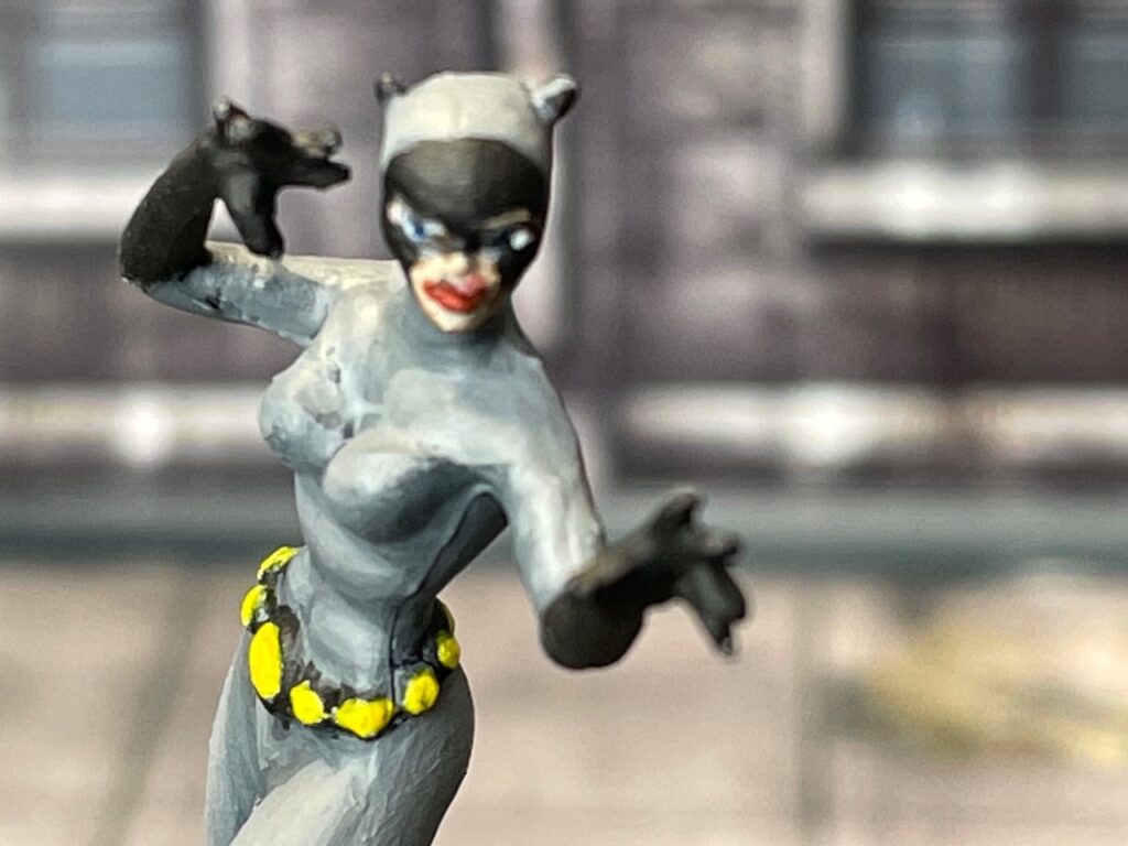 First: Catwoman. The easiest one to paint by far. Not that the others were difficult, but she came together in about half an hour.